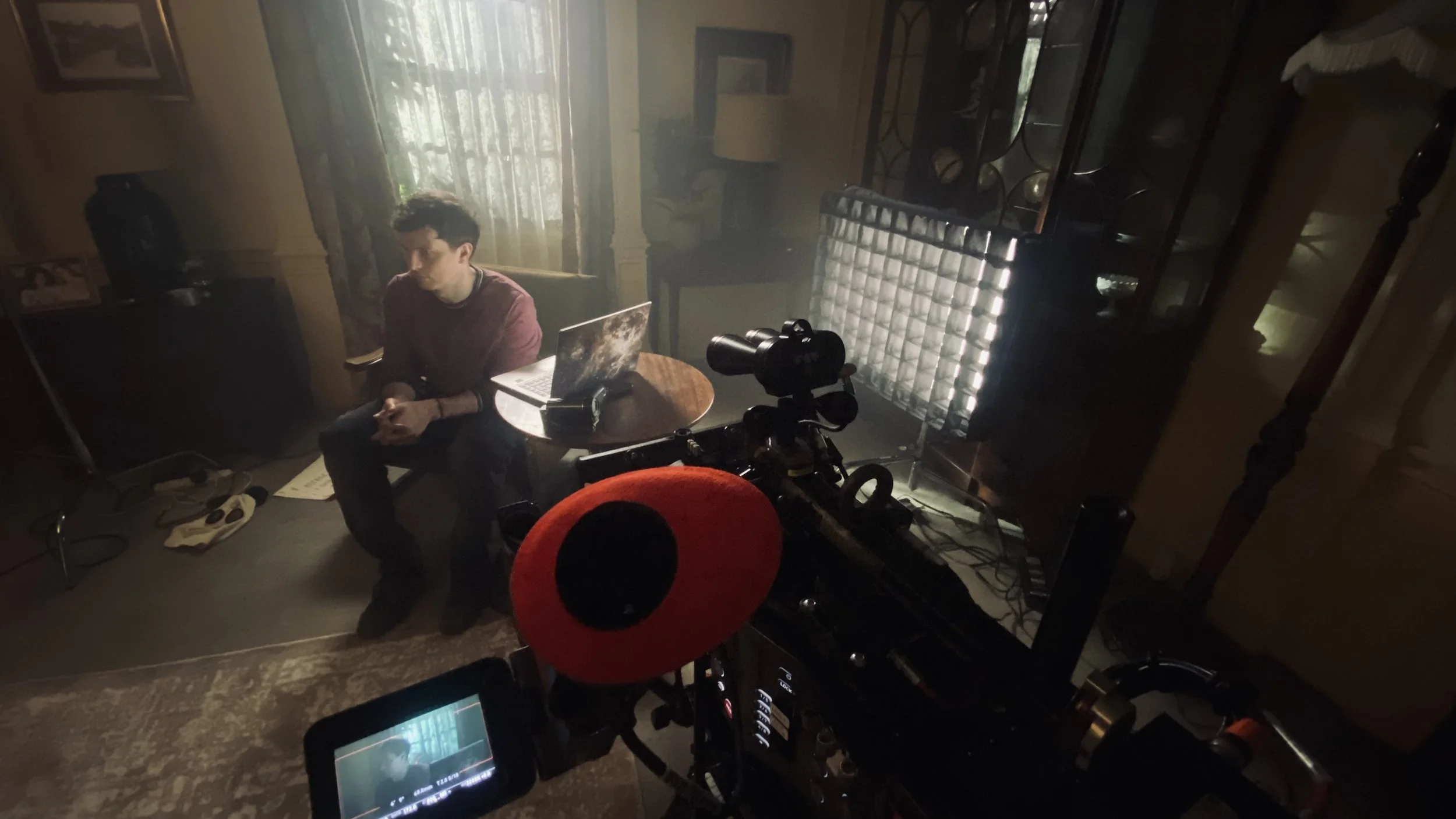 This was shot during daylight hours, but with all natural light blocked out and a 4x4 kino providing the window light behind Jack Parry-Jones